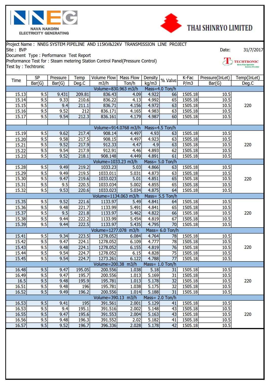 CONDITION DATA : MEDIUM PRESSURE STEAM